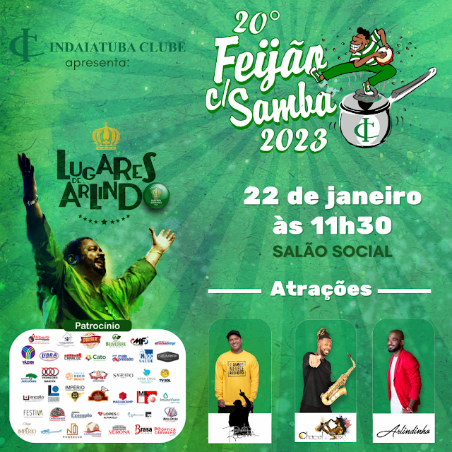 A festa acontecerá dia 22 de janeiro de 2023 no Salão Social do Clube, a partir das